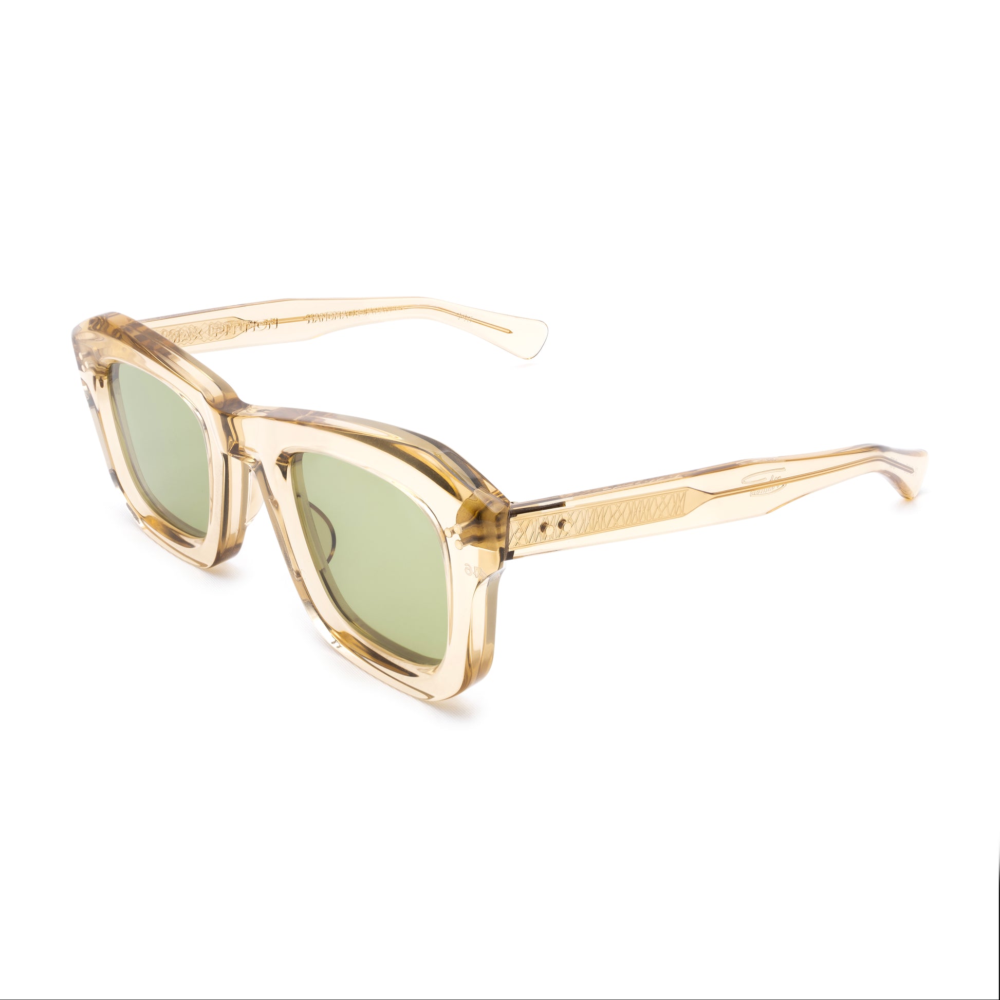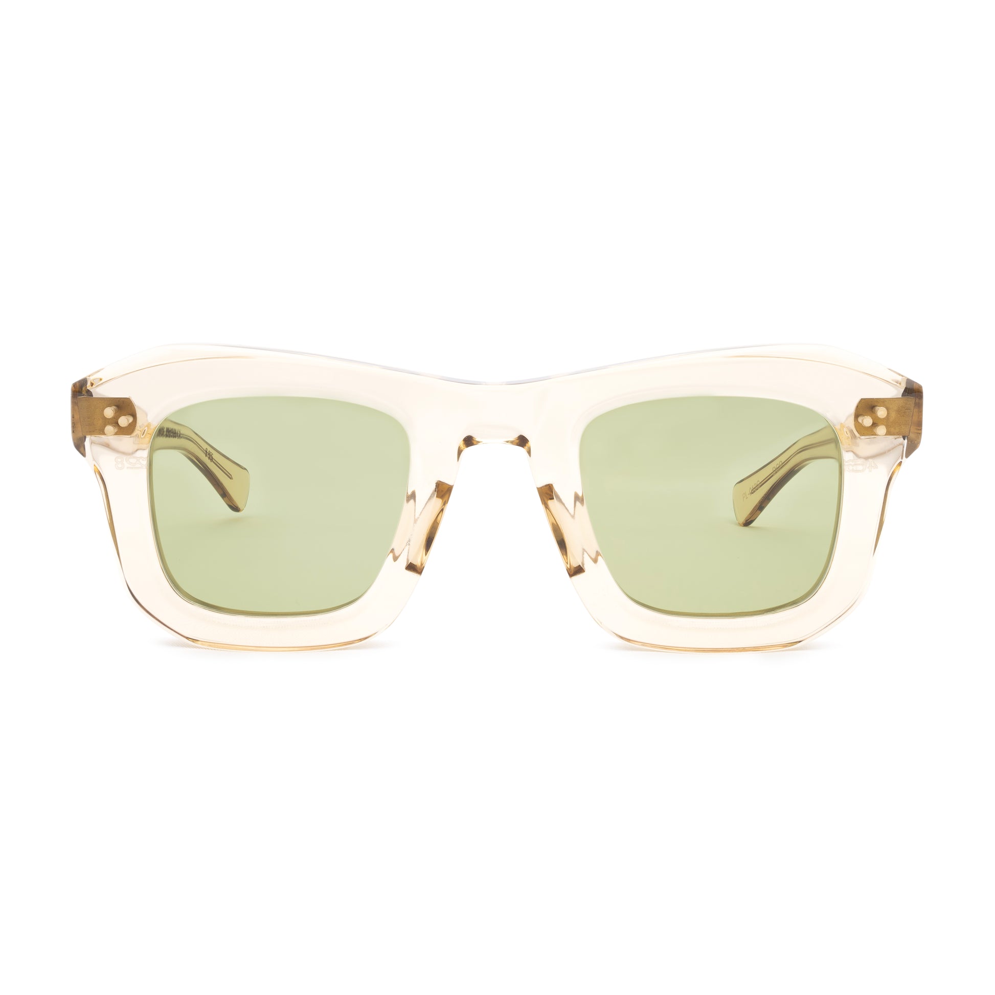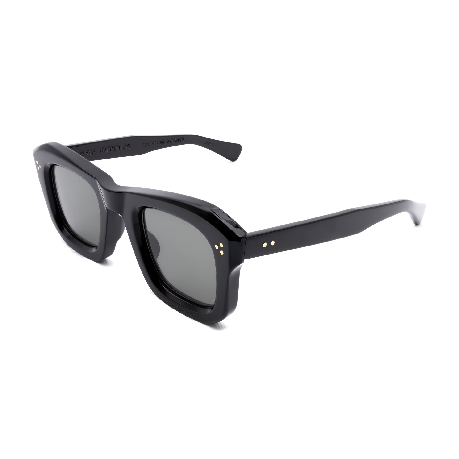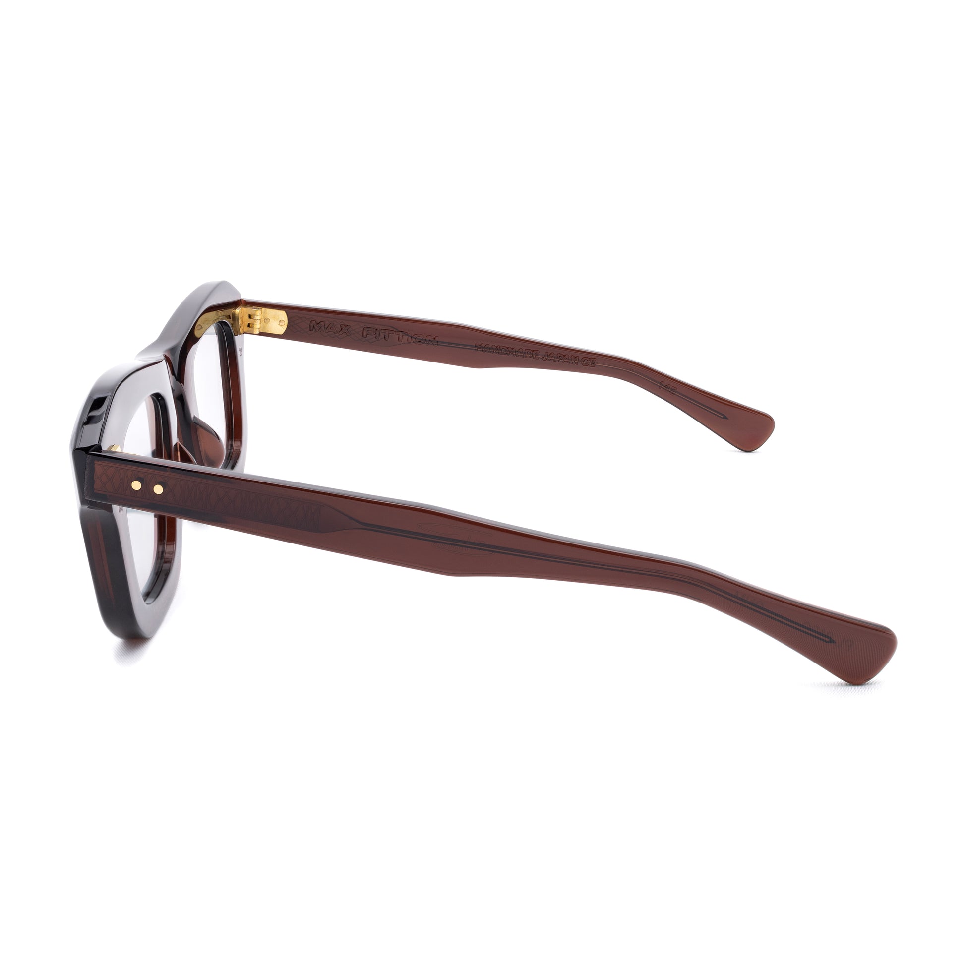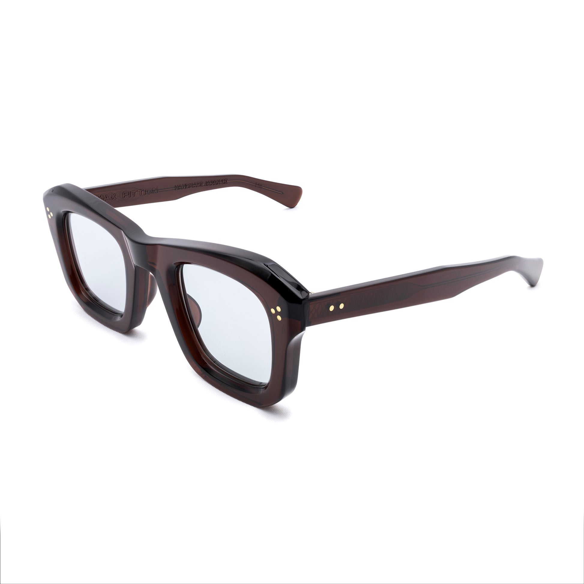 LE MONSTRE UNEARTHED FROM THE MAX PITTION ARCHIVES OF THE 1940'S IS A BOLD CARVED AND ARTICULATED SHAPE. WHILE THE LENS IS SQUARE / SLIGHTLY ROUNDED: THE TOP BRIDGE IS HIGHLY CARVED. IT DIPS IN THE MIDDLE AND RISES TO THE OUTSIDE CONNECTION WITH A 22-DEGREE POINT AND 3D CARVING ALL THE WAY DOWN THE CONNECTION. THE RIMLINE IS MEATY AND CARVED WITH A CUT-OFF ON THE OUTSIDE BOTTOM CORNER. BUILT FOR ANY RX OR YOUR FAVORITE SUN LENSES.